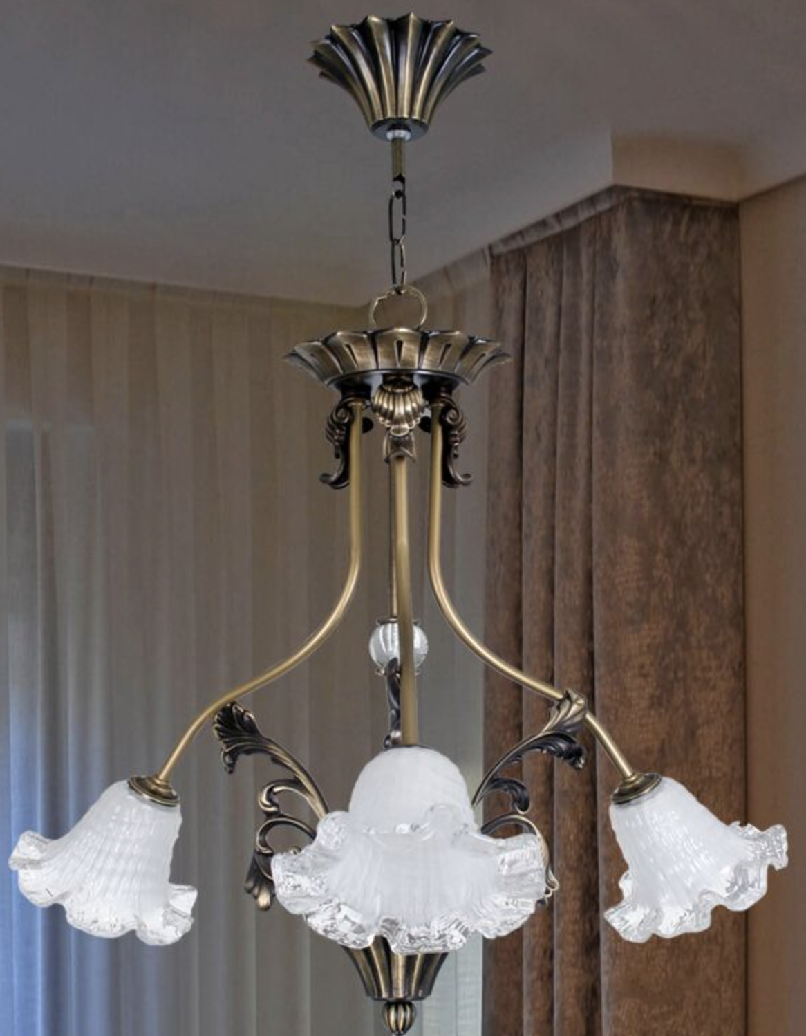 Lámpara de bronce con tulipas cristal hacia abajo Silvioss