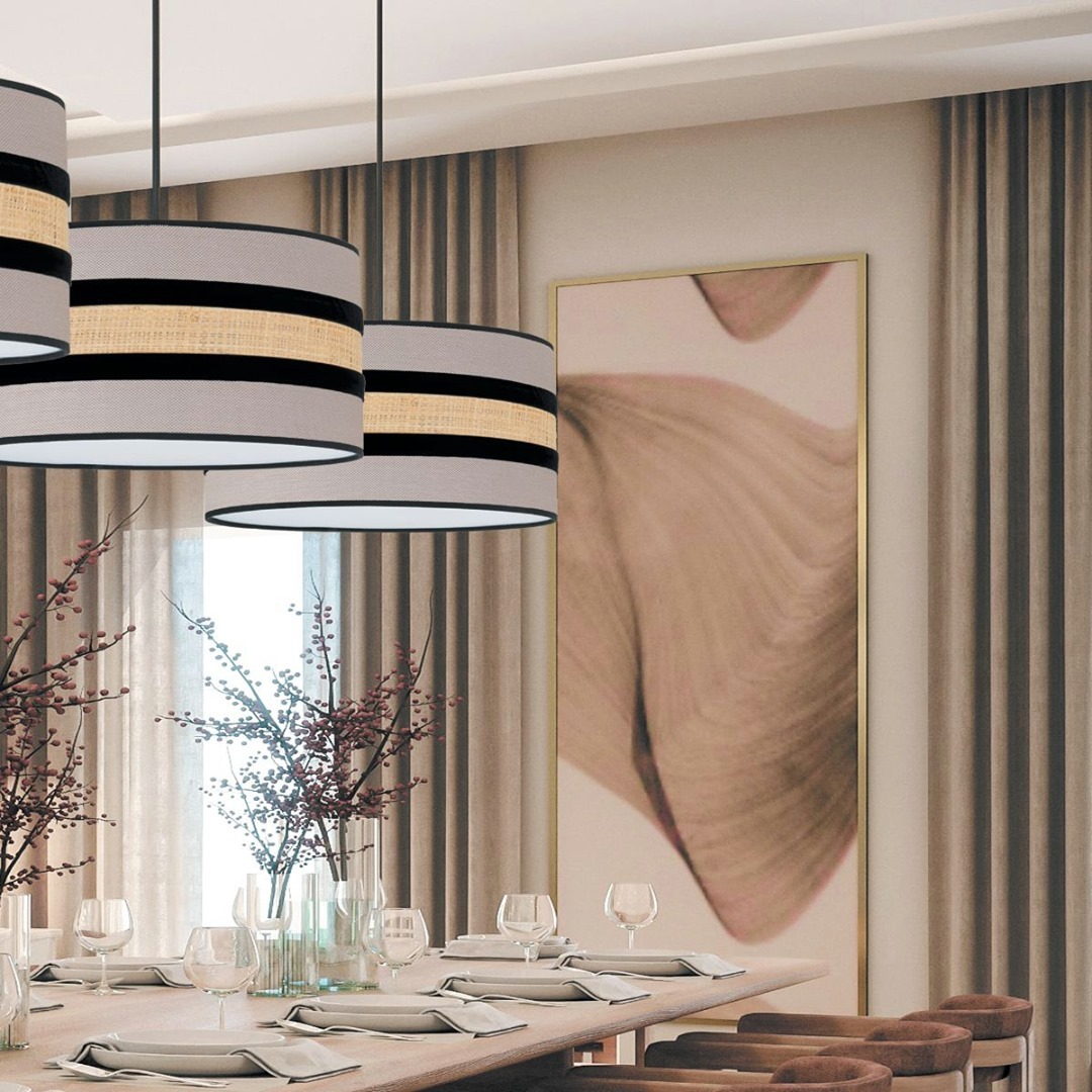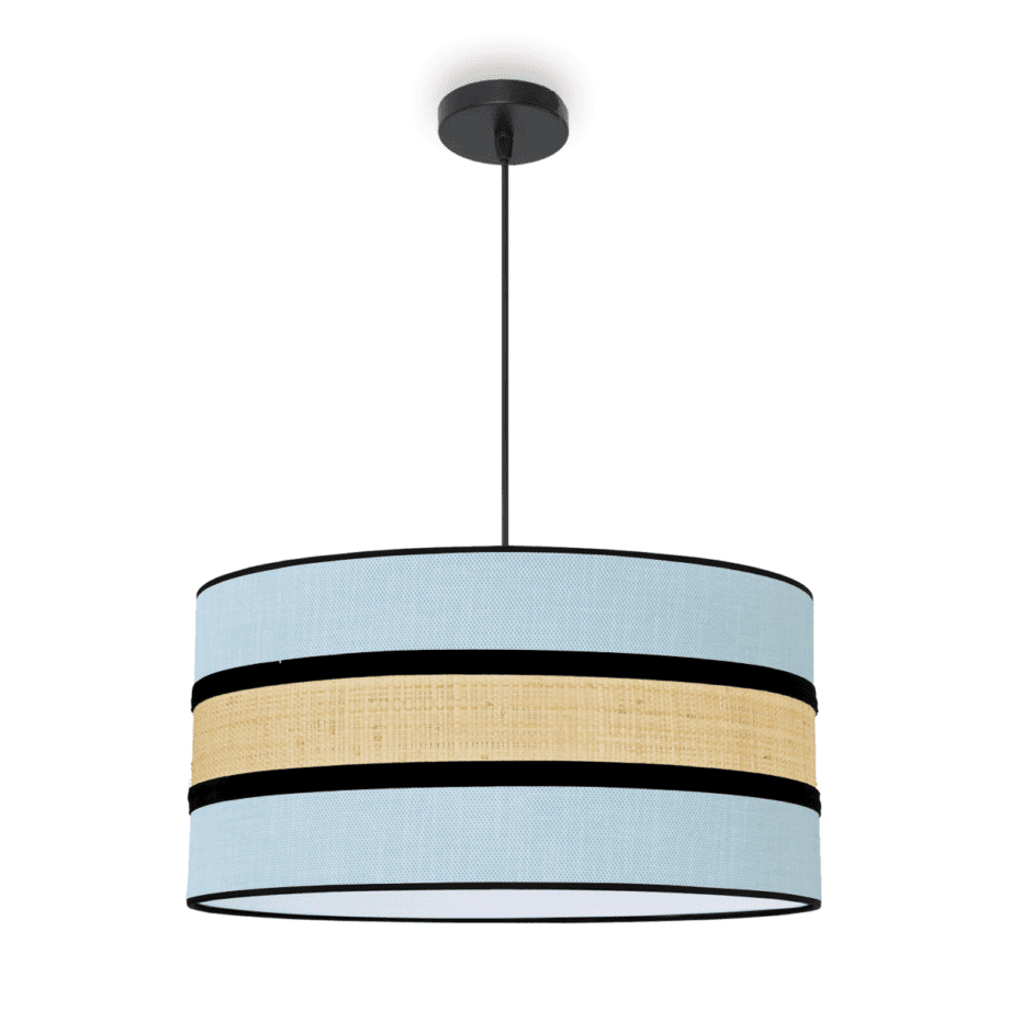 DIBU: Lámpara de Pantalla con tela CAÑA y Neptuno azul 493 Marinisa, 50cm para 3 bombillas E27.
