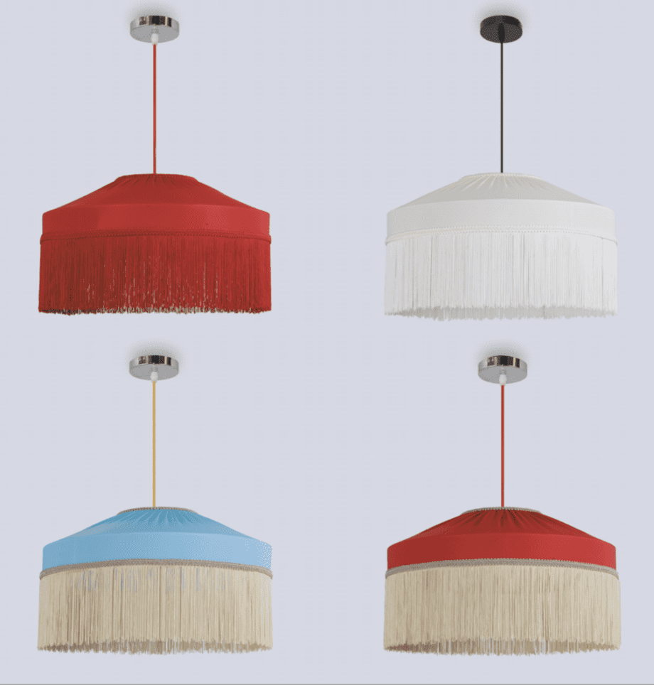 Lámpara de Pantalla FATA lycra roja con flecos 436 Marinisa, 40cm