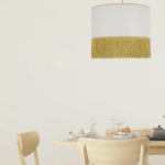 Colgante de pantalla en cilindro, con tela Venecia blanco con vivo dorado
