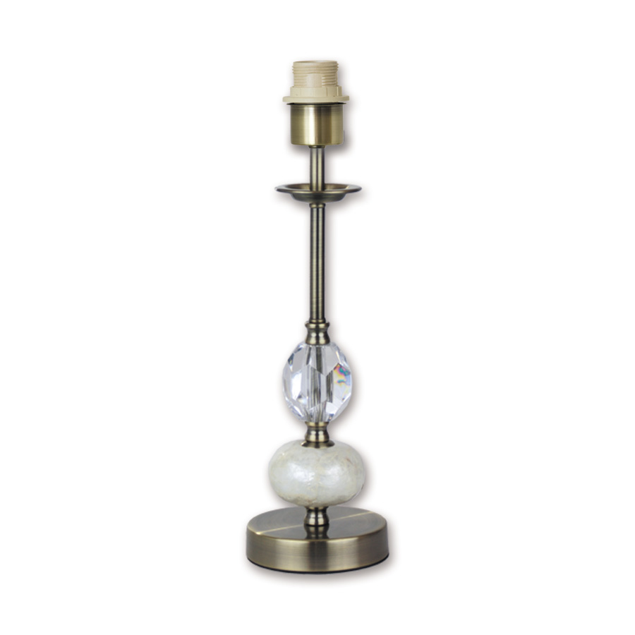 Pie de sobremesa cromo, con nácar y cristal tallado, SIN pantalla, visita nuestra sección de pantallas para personalizar tu sobremesas.