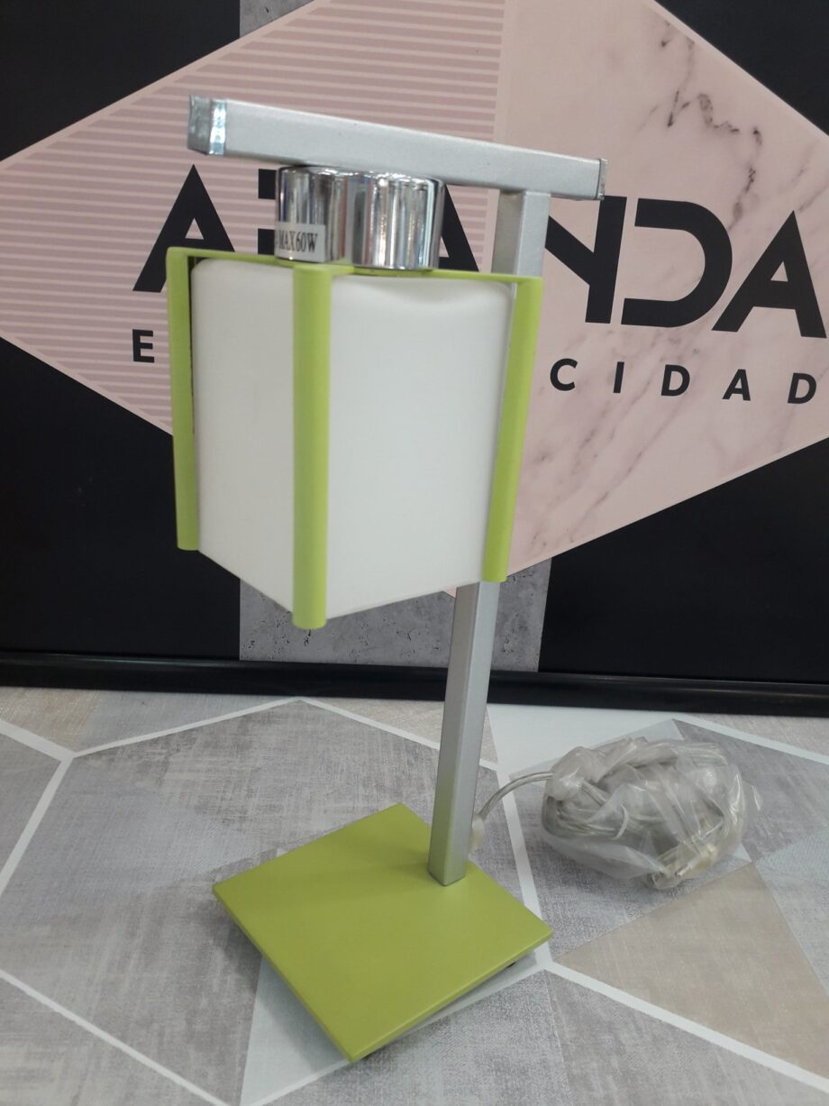 Ultima unidad sobremesa gris y verde con tulipa opal blanco cuadrada.
