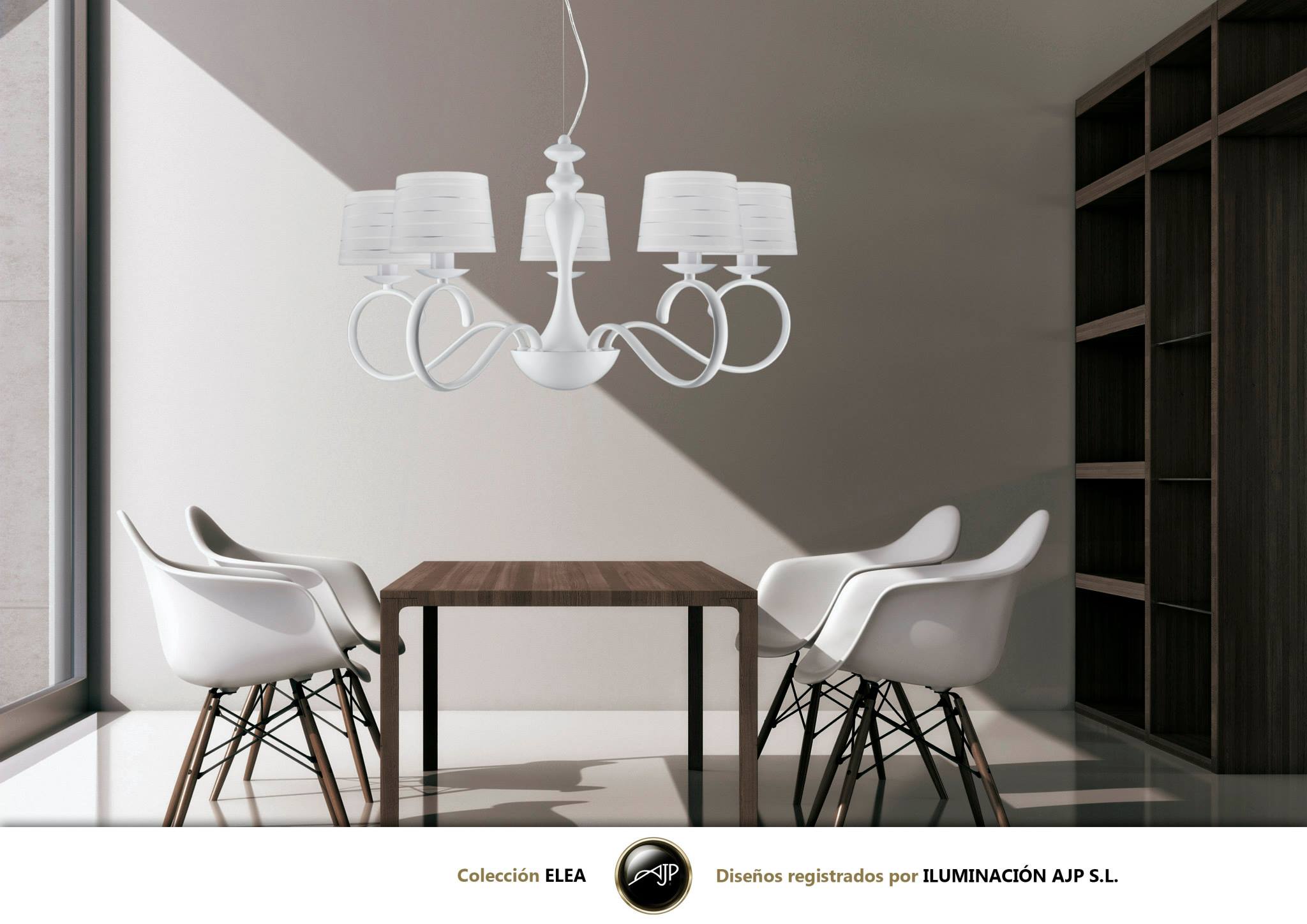 ELEA: Lámpara de techo lacada blanca con 5 brazos y pantallas seda, 3075LA/5P Ajp. STOCK EN TIENDA