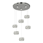 Lámpara ELEGANCE base redonda cromo y cristal con 6 colgantes 60W Led Acontract