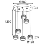 Lámpara colgante LED modelo ELEGANCE base redonda, seis focos colgantes redondos acristalados.