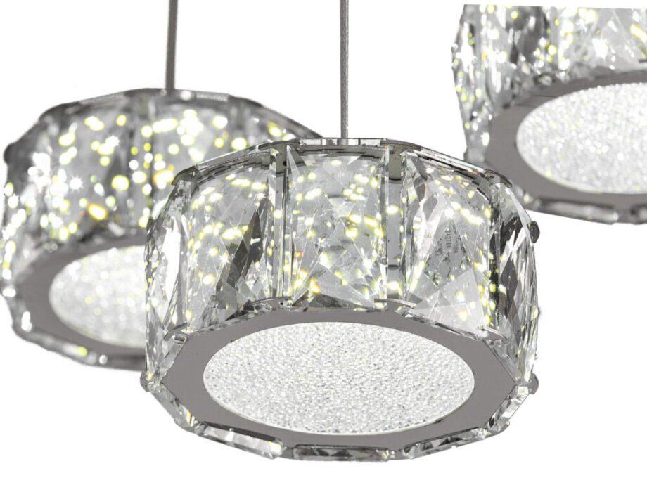 Lámpara ELEGANCE de base redonda cromo y cristal con 3 colgantes y 31W Led