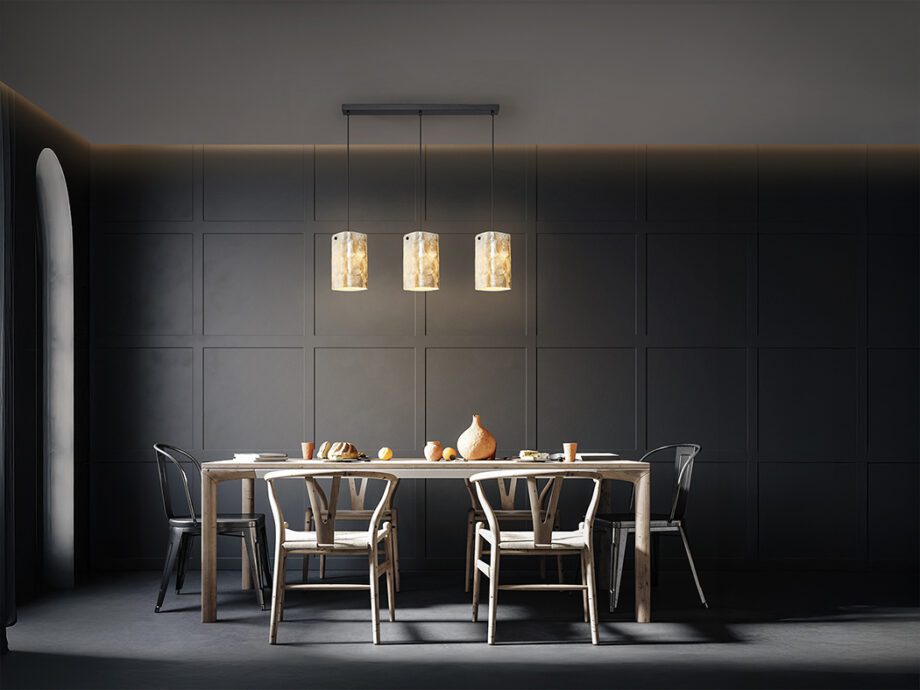 Lámpara en línea NAKAR negra con 3 tulipas nácar bombilla Led E14 Schuller