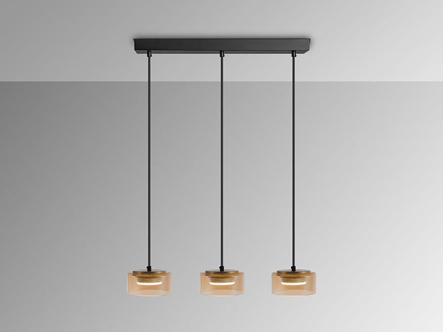 Lámpara en línea OLAIA negra con cristal ámbar de bombillas Led I3 Iluminación