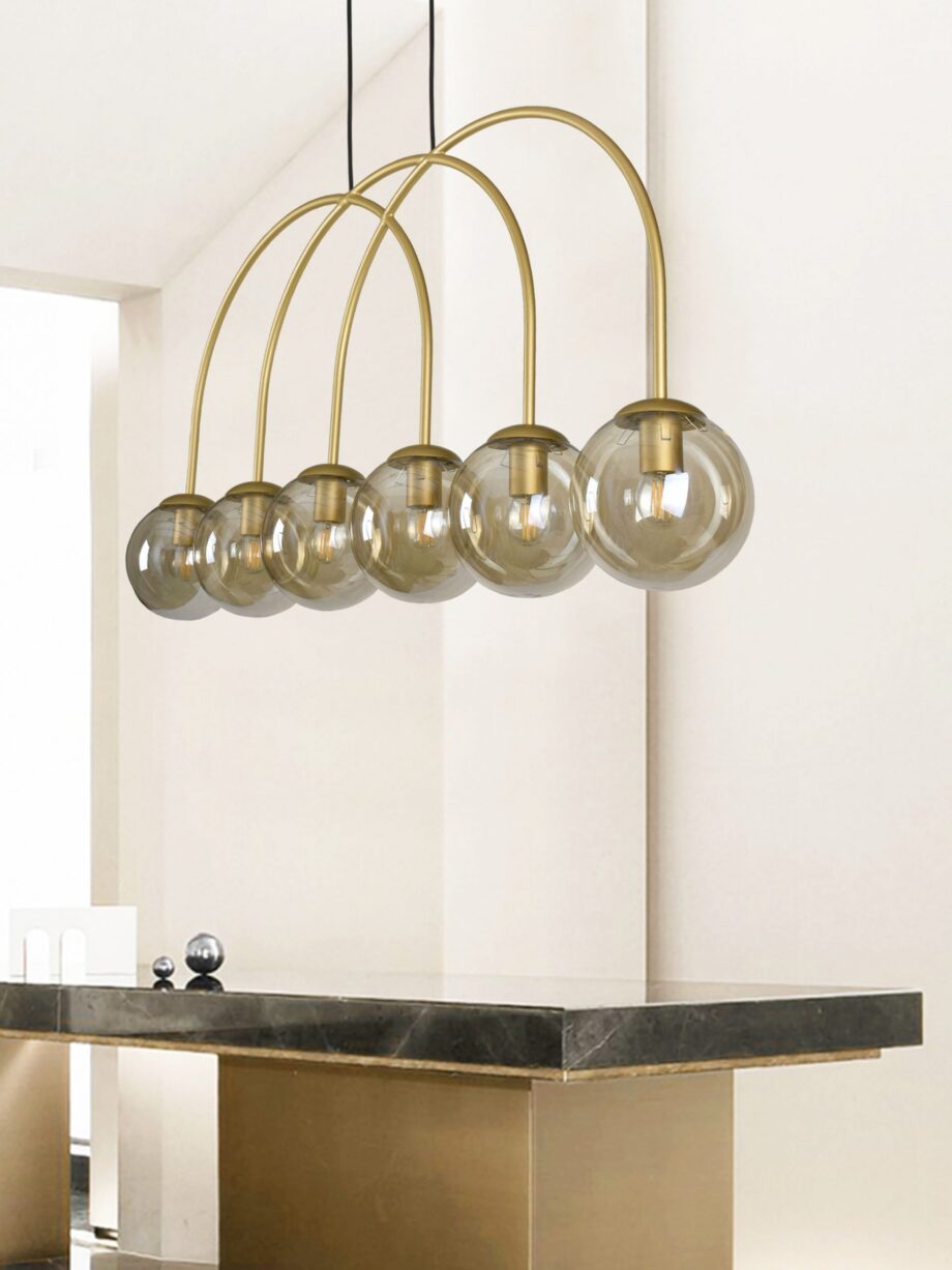 Lámpara ESFERAS Oro mate con 6 tulipas esferas ámbar Silvioss