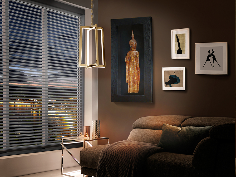 Lámpara LED, realizada en acero inoxidable pulido, con baño dorado.