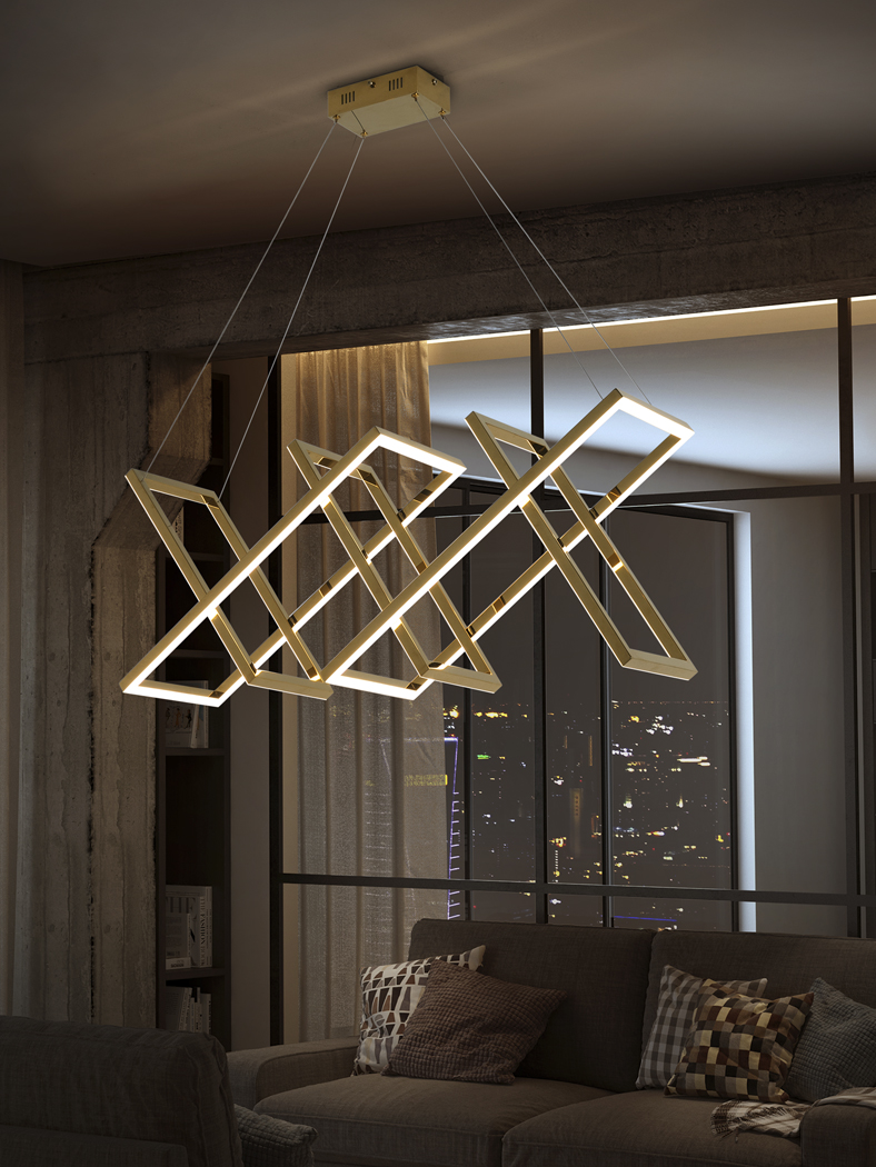 LIMUS: Espectacular lámpara geométrica 50W Led Oro, 753319 Schuller. 101 cm. STOCK EN TIENDA