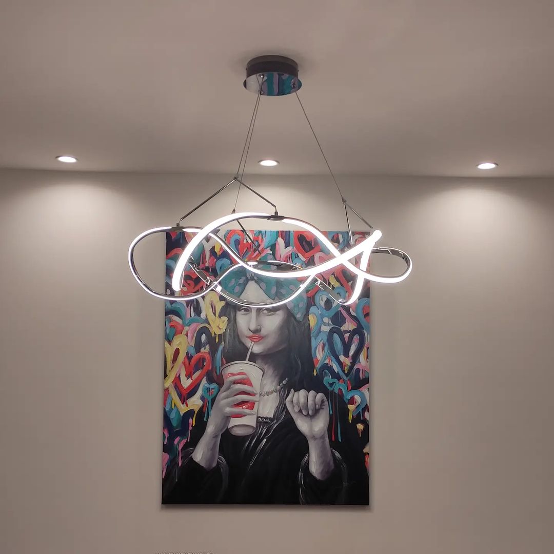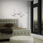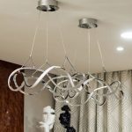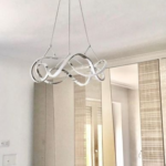 Lámpara LED, realizada en aluminio en acabado cromado. Regulable en altura con tensores  y cable transparente.