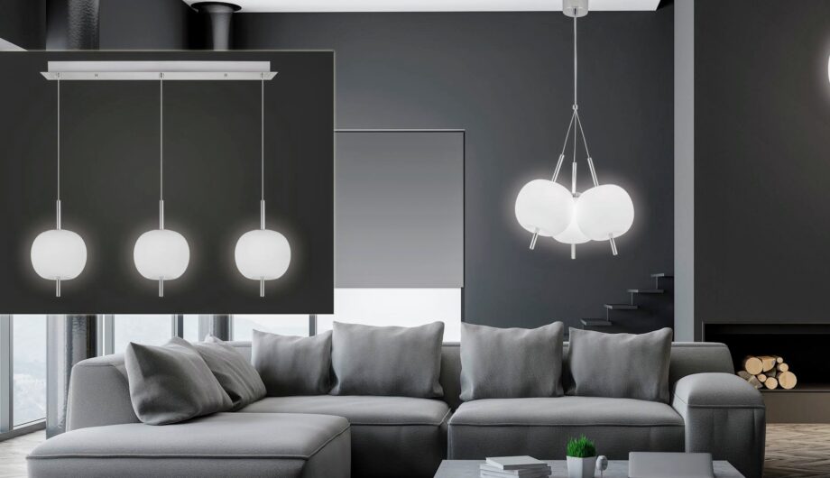 QUIARA: Lámpara línea cromo y 3 colgantes en cristal opal, 3188 Ajp Iluminación. STOCK DISPONIBLE EN TIENDA