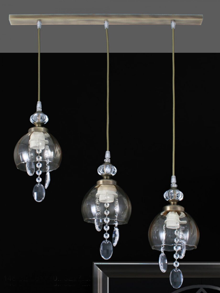 Lámpara línea Cuero con 3 colgantes tulipas ámbar con cristales Silvioss