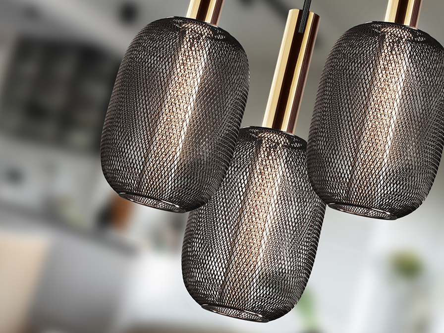 Lámpara MICRON negra de base redonda de 3 colgantes oro