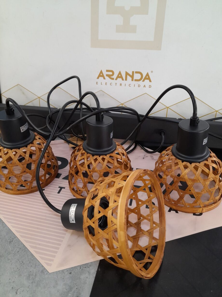 Lámpara negra WENNA con cuatro colgantes geométricos de bambú Stock en tienda Globo 54053-4h