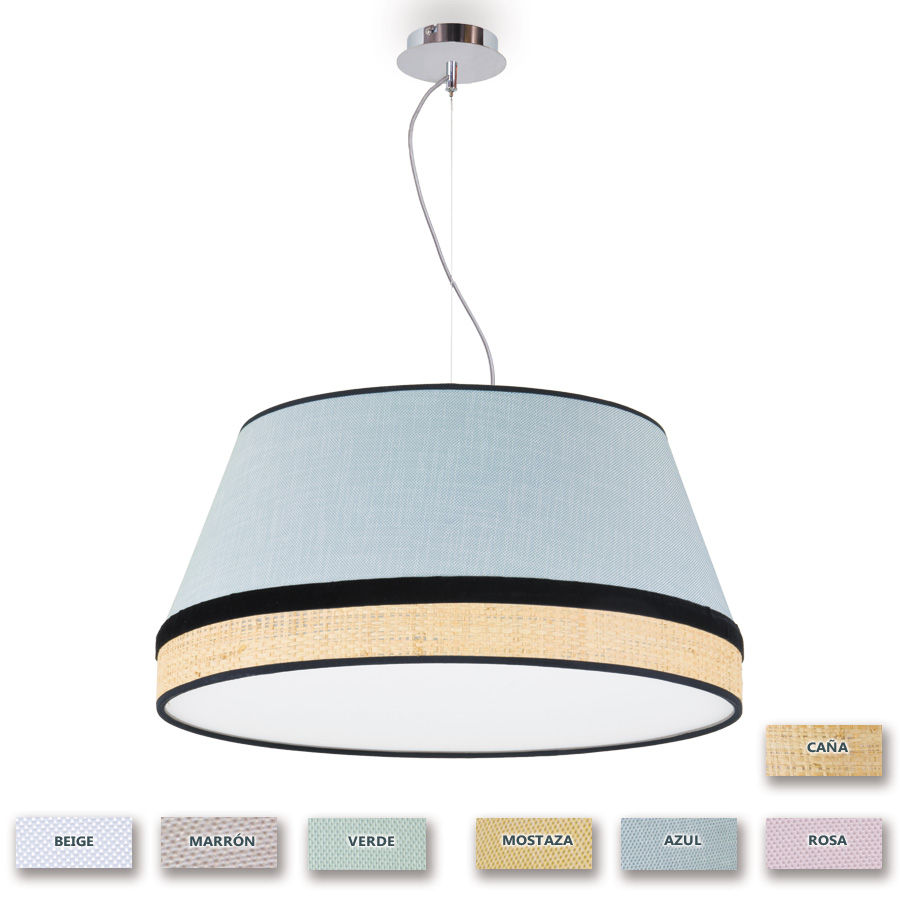 PRAT: Lámpara con tela Neptuno verde aguamarina y caña, 50cm, 463 Marinisa. Para 3 bombillas E27