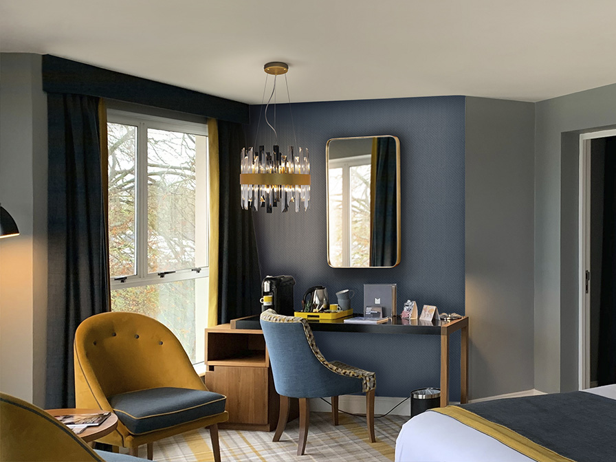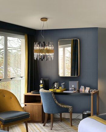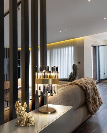 Sobremesa GRACE oro y cristal diseño con 6 bombillas G9 Led Schuller