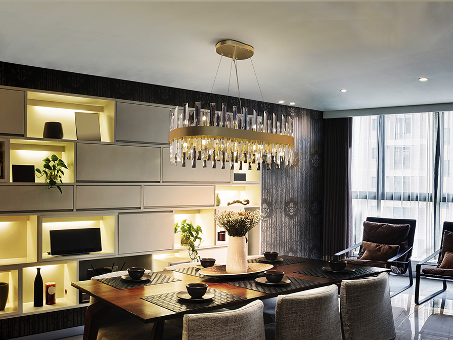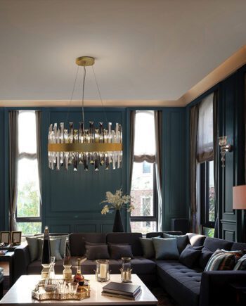 Lámpara oval GRACE dorada y cristal con 20 bombillas Led G9 Schuller