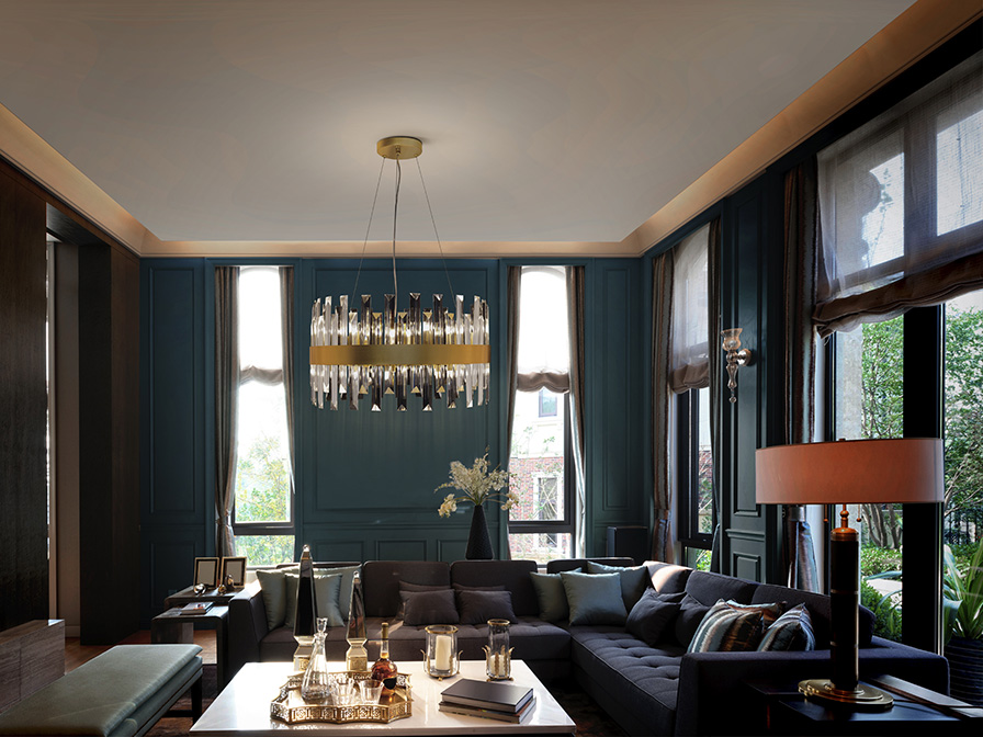 Lámpara GRACE redonda oro y cristal con 10 bombillas G9 Led Schuller