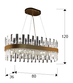 Lámpara ovalada de 28 luces, realizada en metal cepillado acabado oro.