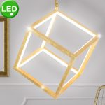 Lámpara colgante acabado en pan de oro con Led incluido cálido de forma cubo geométrico.