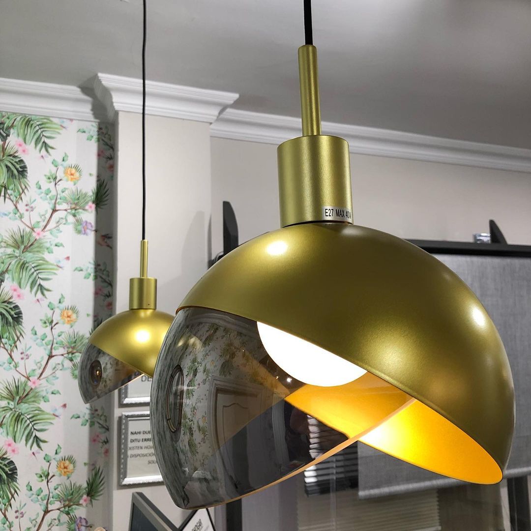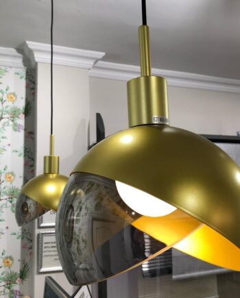 Lámpara RAIOLA de techo cristal fumé y metal latón envejecido VP Interiorismo