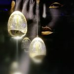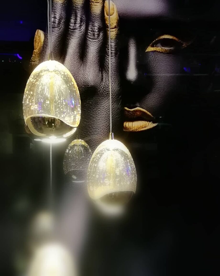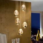 Tulipas con forma de gota realizadas en cristal tono champán macizo con burbujas decorativas en su interior. Regulables en altura. 25W LED. 2.400 lm. 3.000 K. DIMABLE.