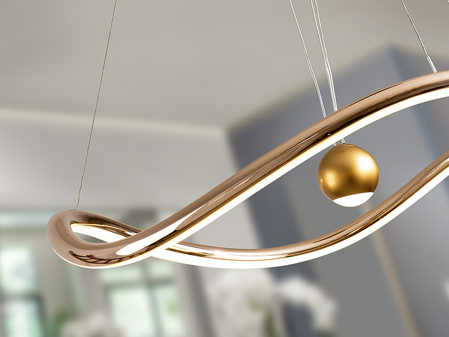 Lámpara ROMINA dorada brillo regulable en altura con esfera central 50W Led Schuller