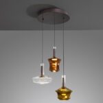 Lámpara SCARLETT bronce oscuro de 3 colgantes de cristal colores con 18W Led Schuller