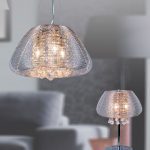 Lámpara MERCURY de techo cromo con pantalla hilos plata Schuller