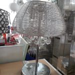 Lámpara sobremesa varillas talladas cromo 35 centímetros de diámetro con base de 22 cm cromo de gran diseño.