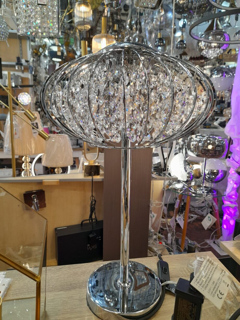 Lámpara sobremesa alta y elegante cromo con cristales Marinisa