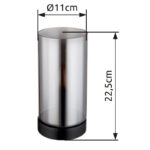 Con un diámetro de 11 cm y una altura de 22,5 cm, es compacta y, sin embargo, lo suficientemente luminosa.