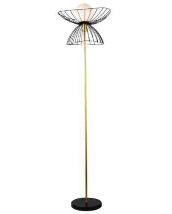 Lámpara sobremesa TRENDY Negro y rejilla Oro con tulipa opal blanca.