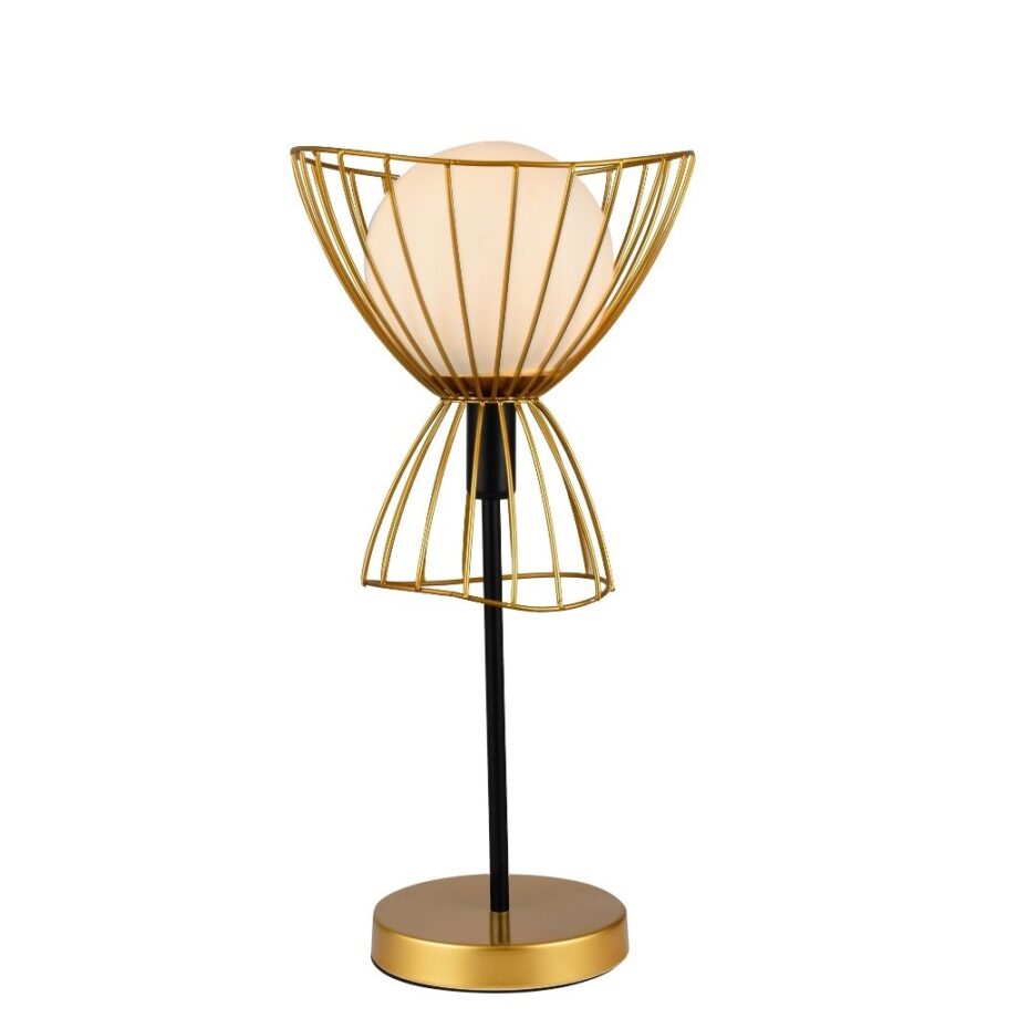 Lámpara sobremesa TRENDY Negro y rejilla Oro con tulipa opal blanca 0104TG TEGALUXE - 53 cm - STOCK EN TIENDA
