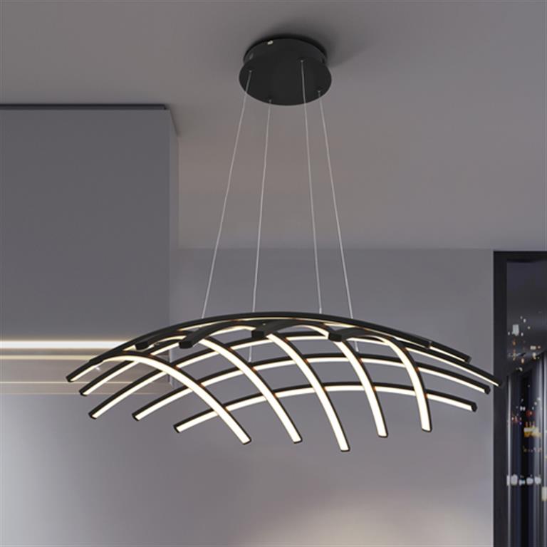 Lámpara TRAMA negra diseño 124cm diámetro con 105w LED cálido
