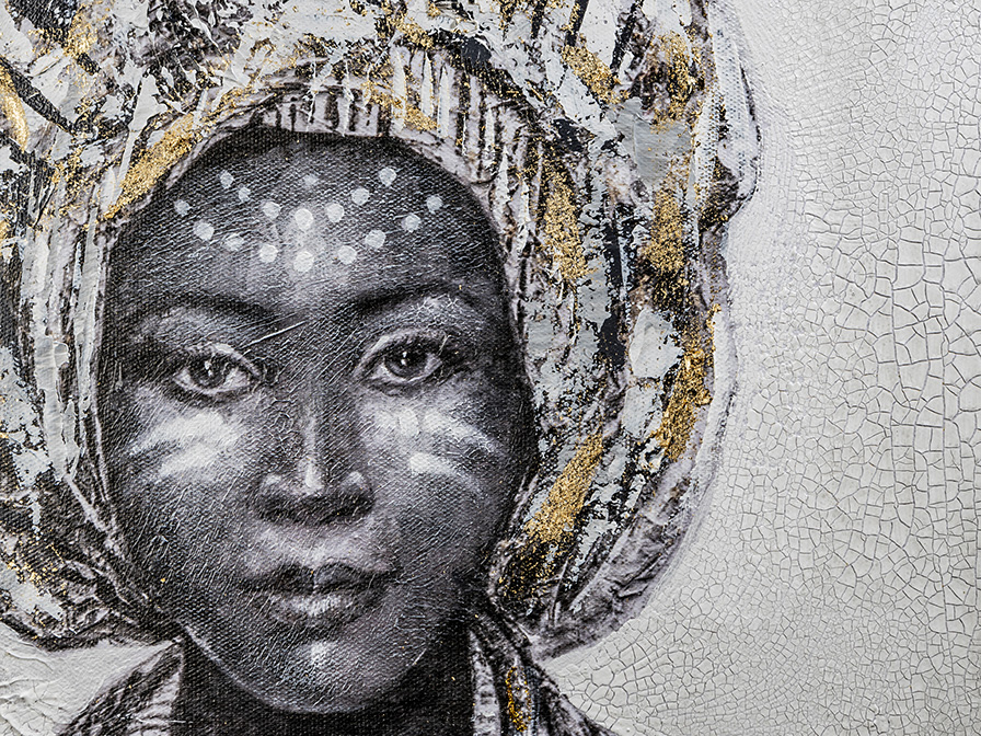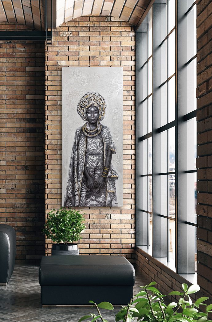Lienzo KISAI vertical de gran tamaño mujer africana en fondo blanco Schuller