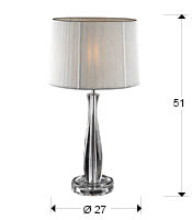 LIN – Lámpara de sobremesa elegante de metacrilato y pantalla hilo plata.