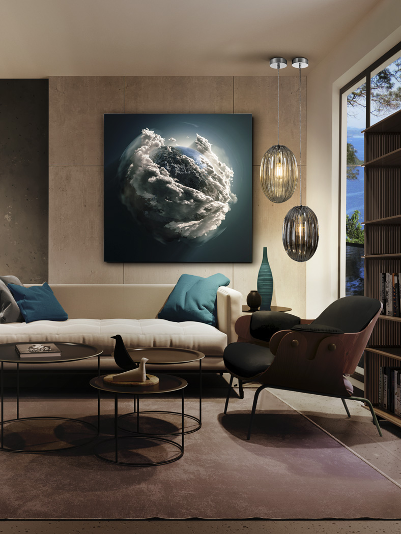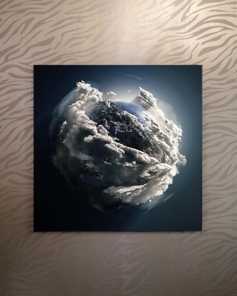 MADRE TIERRA: Fotografía en Cristal, planeta con nubes, 948135 Schuller. 100 x 100 cm.