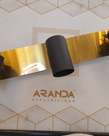 Regleta de 2 focos  colección MARLEY, color negro mate con base oro