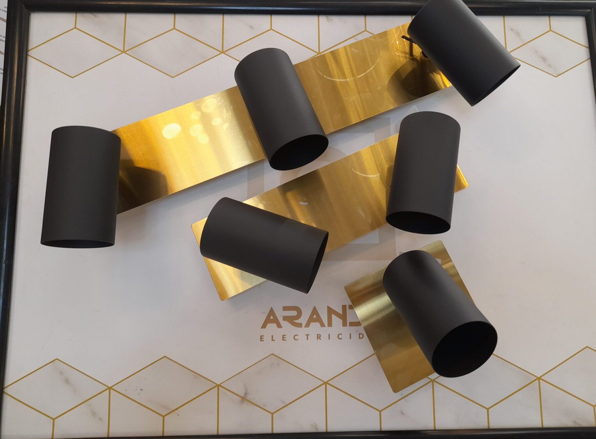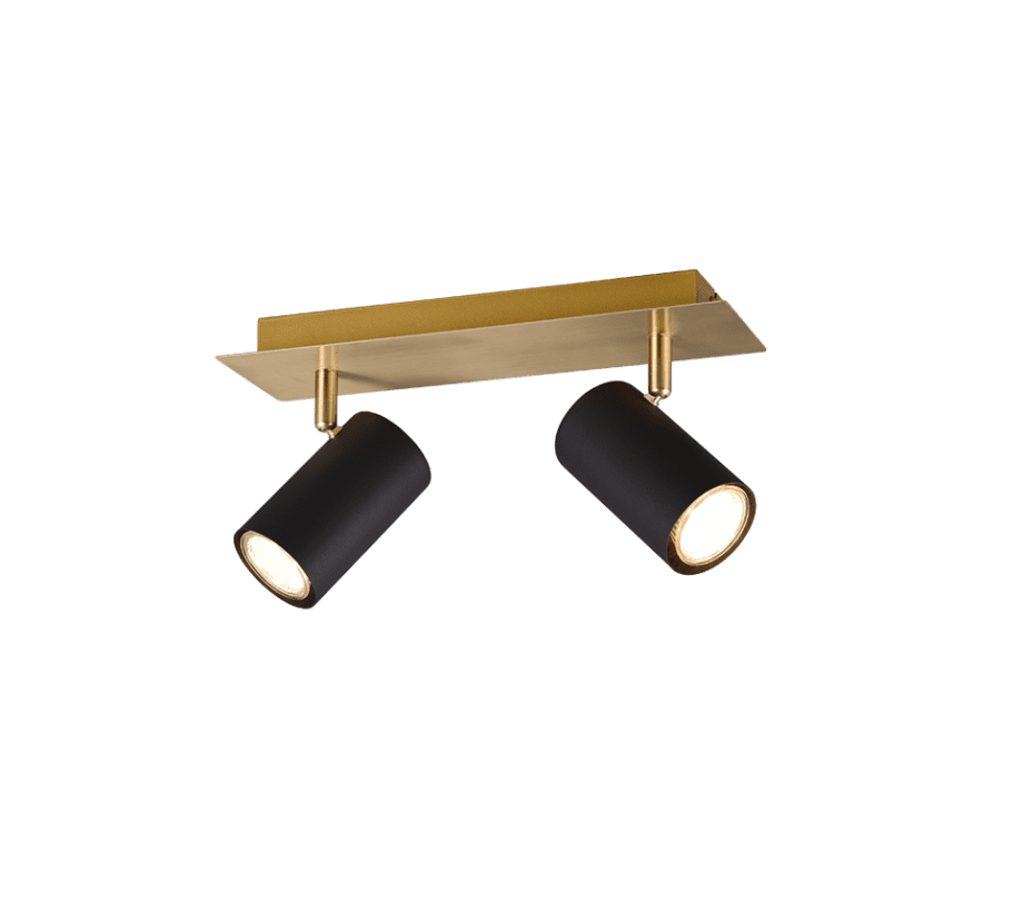 MARLEY: Regleta de 2 focos articulados en negro con base Oro, para bombilla Gu10, TRIO. 30cm. STOCK DISPONIBLE EN TIENDA