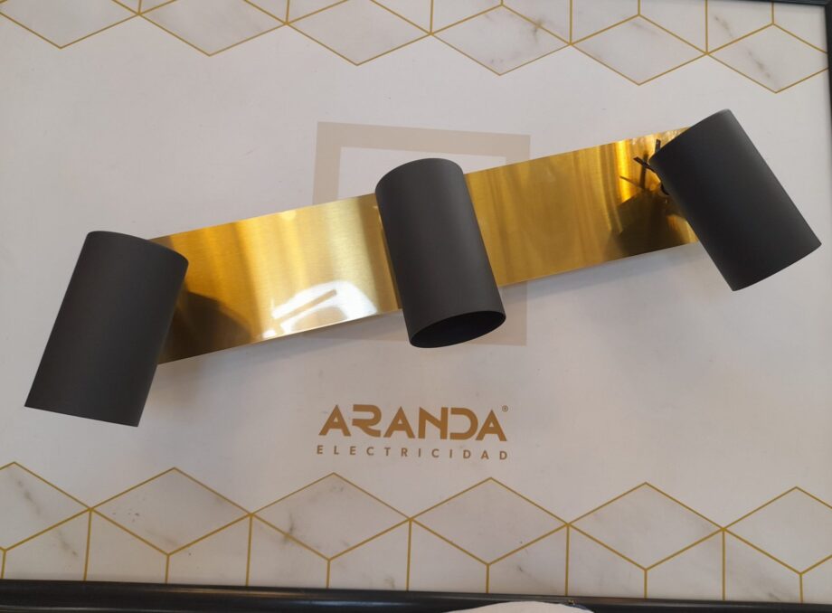 Regleta de 3 focos colección MARLEY, color negro mate con base oro