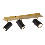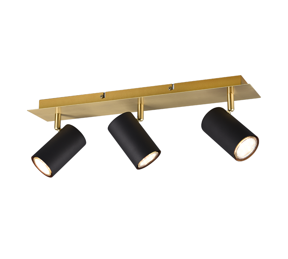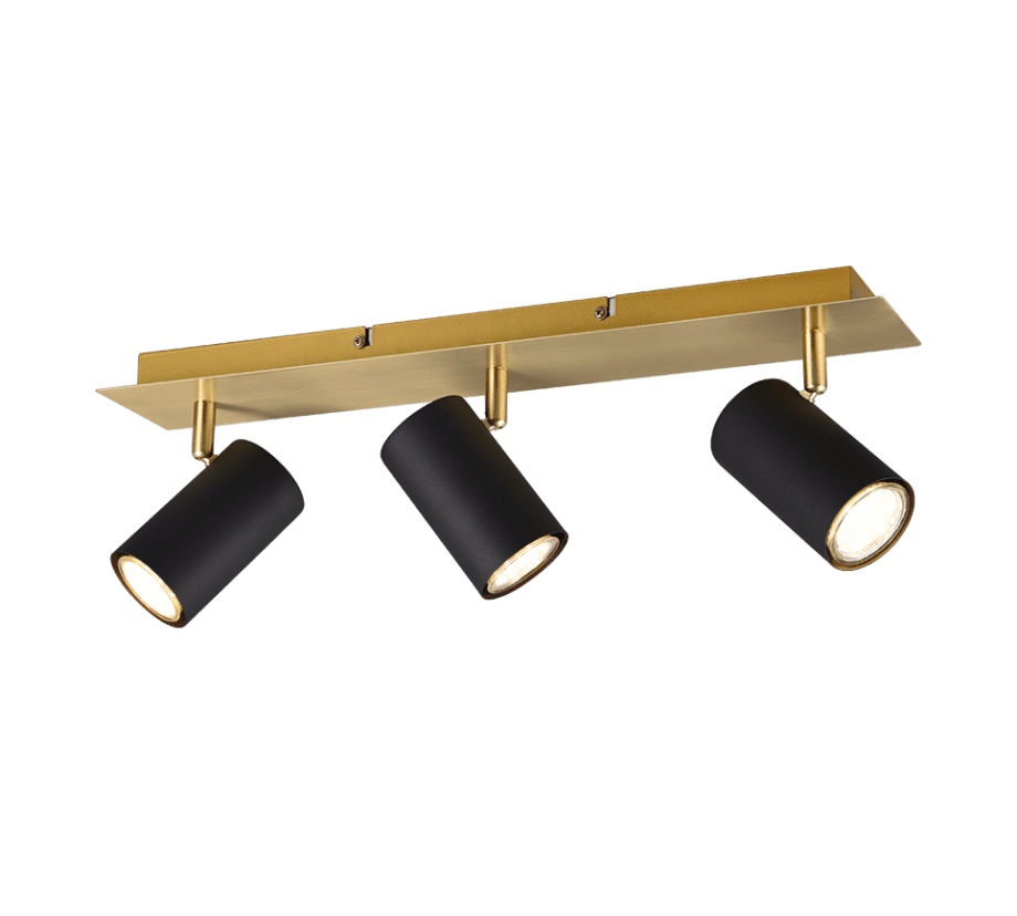MARLEY: Regleta de 3 focos articulados en negro con base Oro, para bombilla Gu10, TRIO. 48cm. STOCK EN TIENDA