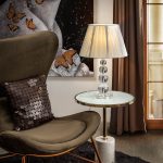 MERCURY - Lámpara sobremesa transparente con pantalla hilos plata
