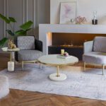 Mesa auxiliar DEKALA en mármol blanco y oro Ø90 Schuller