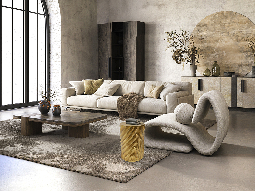 Mesita auxiliar realizada en OMG (óxido de magnesio moldeado) acabado oro patinado