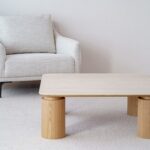 Mesa de centro LINEA madera fresno natural y tapa cerámica beige VP Interiorismo