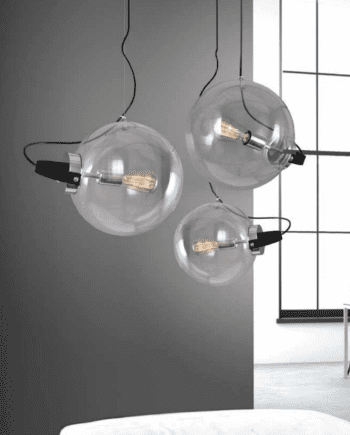 MONDO: Colgante individual esfera cristal transparente enfilaje negro, 1070/NE FOKOBU para bombilla E27 con 30cm diámetro.
