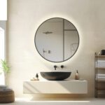 OLBIA: Espejo redondo 46W Led luz cálida 3k con marco negro, 3958 Acb Iluminación. Ø81 cm